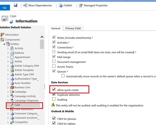 To remove entities open the solution, Navigate to entity and deselect “Allow Quick Create”
